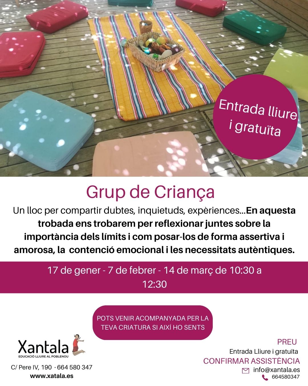 El grup ho acompanya Roberta Castellan, formada en educació lliure (La Caseta, Barcelona), acompanyament emocional (SENDA, Barcelona) i psicomotricitat educativa-preventiva (AEC, Barcelona). Actualment cursant una formació de doula (Guardianas del nacimiento, Alacant). Acompanyant en espais d'educació lliure i grups de psicomotricitat. Només has de confirmar assistència: info@xantala.es